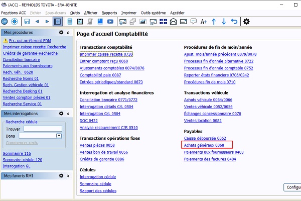 <!-- wp:reyrey-js/paragraph {"content":"Les transactions reportées sont celles qui ont été reportées au grand livre. Une contre-passation ou un ajustement est requis afin de pouvoir corriger ces transactions. Pour commencer, localisez la transaction à l’écran \u003cspan class=\u0022RR-Font-Weight Bold\u0022\u003eRecherche achats généraux\u003c/span\u003e en sélectionnant \u003cem\u003ePage d’accueil Comptabilité → Achats généraux → Fichier → Rechercher/modifier.\u003c/em\u003e"} /-->